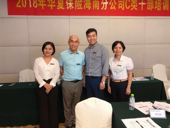 2018年8月17日,應華夏人壽保險股份有限公司海南分公司邀請,我公司特聘講師史振鈞老師為華夏保險全省各機構的17名C類干部培訓《走向卓越的情商、逆商與智商》、《問題分析與解決》課程。培訓在全省各機構的17名C類干部積極參與下圓滿成功。課程培訓受到華夏保險領導和全省各機構的17名C類干部高度認可及感謝!