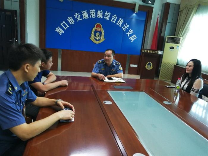 2018年9月27日,田福人力客服經(jīng)理劉金女士前往海口市交通港航綜合執(zhí)法支隊與支隊領導一同對秀英大隊西站林偉斌同