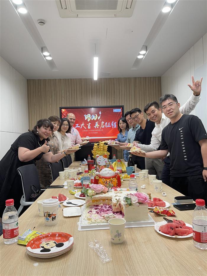 陳海平董事長、Queena Qi女士祝賀詞并切開業蛋糕。大家共同舉杯,祝賀上海田福開業大吉,事業蒸蒸日上,再起征程。
