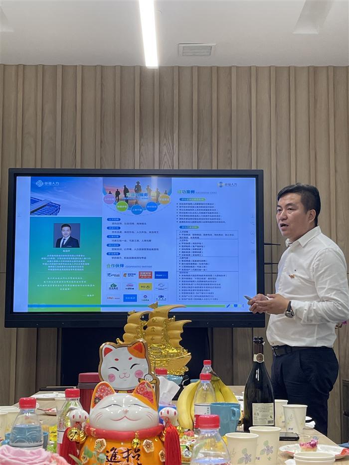 鼎邦泰信控股集團董事長、漢斯邁企業管理咨詢集團董事長兼CEO、田福人力服務集團董事長兼CEO、邁田教育科技集團董事長兼CEO陳海平先生與上海田福全體團隊成員親切會面,與會的嘉賓還有海南快幫科技總經理吳宜亭女士、邁田教育科技集團總經理蒼源先生。上海田福團隊出席的有公司副總Queena Qi女士、項目總監黃偉豪先生、項目經理陳光明先生。