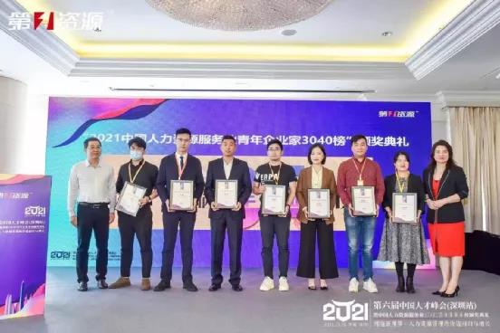 大會同期進行了“中國人力資源服務業(yè)青年企業(yè)家3040榜”頒獎典禮。中國人力資源服務業(yè)青年企業(yè)家3040榜從從業(yè)年限、卓越成就等多方面綜合考量,甄選出了30歲以下與40歲以下的青年企業(yè)家,旨在鼓勵在人力資源服務業(yè)中做出積極貢獻的青年才俊,以榜樣的力量帶領中國人力資源服務業(yè)快速前行。田福人力&漢斯邁創(chuàng)始人陳海平榮登榜單,獲得獎項。