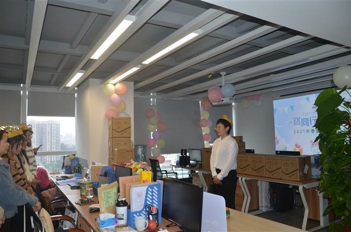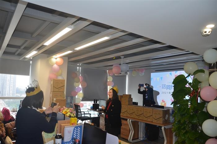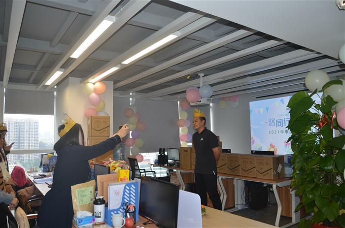 生日會(huì)在正式開始,陳海平董事長(zhǎng)感謝員工們對(duì)公司做出的貢獻(xiàn),并送上生日祝福。