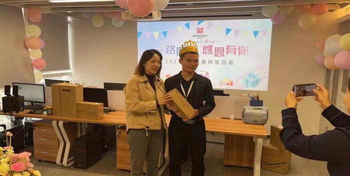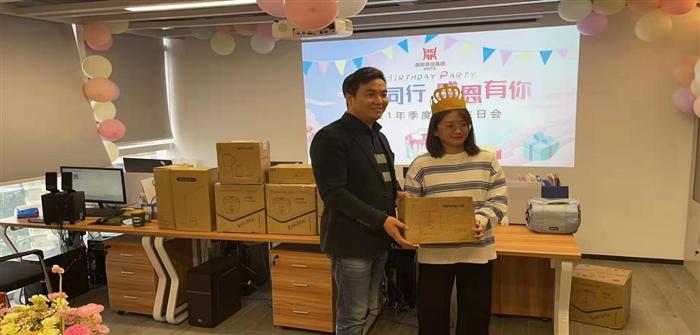 吳宜亭總經(jīng)理依次為海南快幫的壽星派發(fā)生日禮物