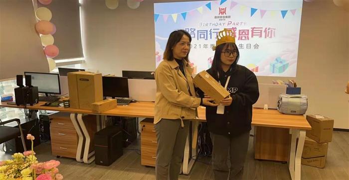 符麗總經(jīng)理依次為海南漢斯邁的壽星派發(fā)生日禮物