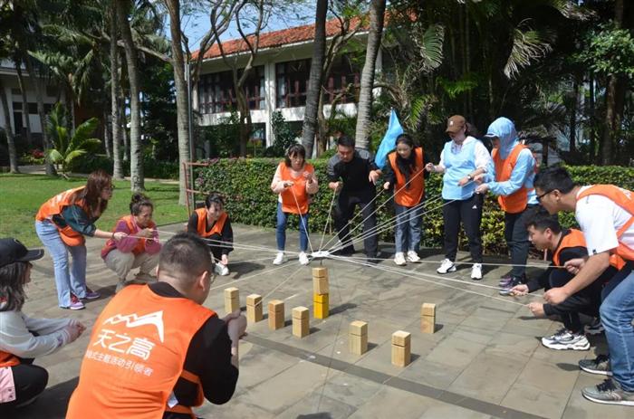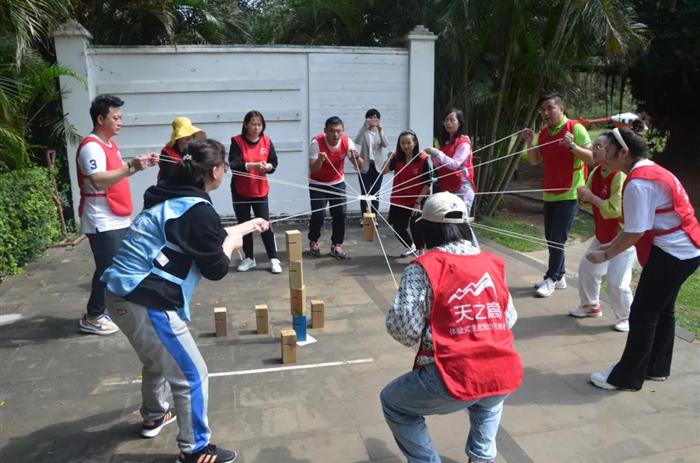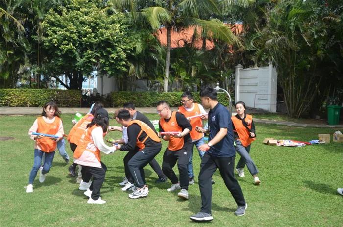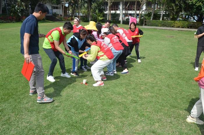 祈福活動結束后,全體成員在西海岸大酒店草坪廣場開展了團建拓展活動。在活動現場,教練首先對拓展活動情況及活動規則進行介紹,通過一系列的熱身活動,營造團隊氛圍,建立相互信任的基礎。整個過程充滿歡聲笑語,大家玩得不亦樂乎。