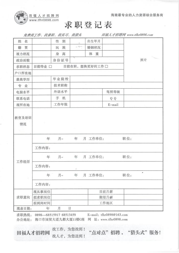 (1)下載填寫《求職登記表》并發送至田福人力公司郵箱;